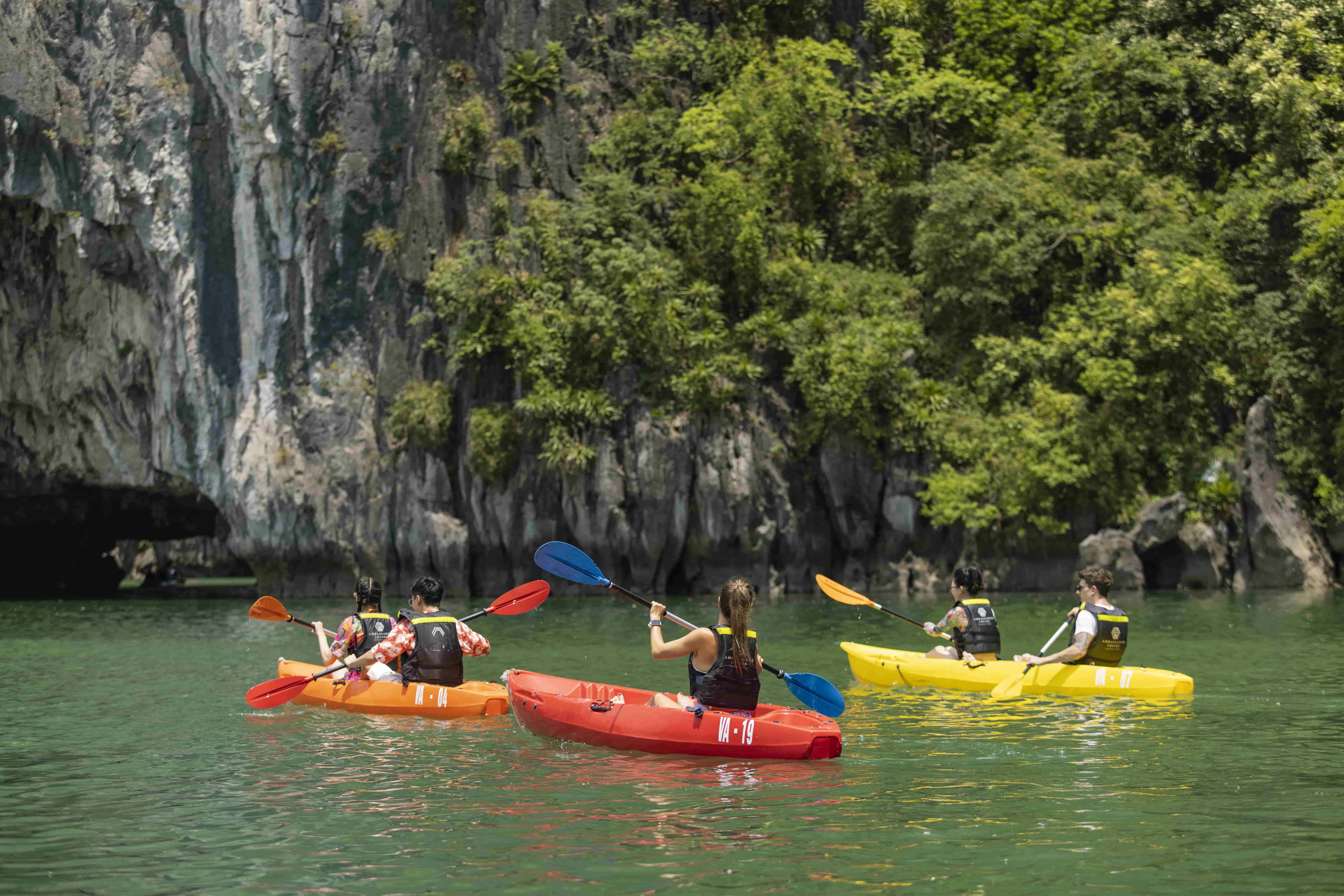 13:30 - 14:30: Khám phá Hang Luồn, một trong những hang động độc đáo nhất ở Vịnh Hạ Long, với hồ tự nhiên bên trong một núi hình cung đóng. Trải nghiệm điều kỳ diệu này trên chiếc thuyền tre được chèo bởi người dân địa phương hoặc bằng cách chèo kayak.