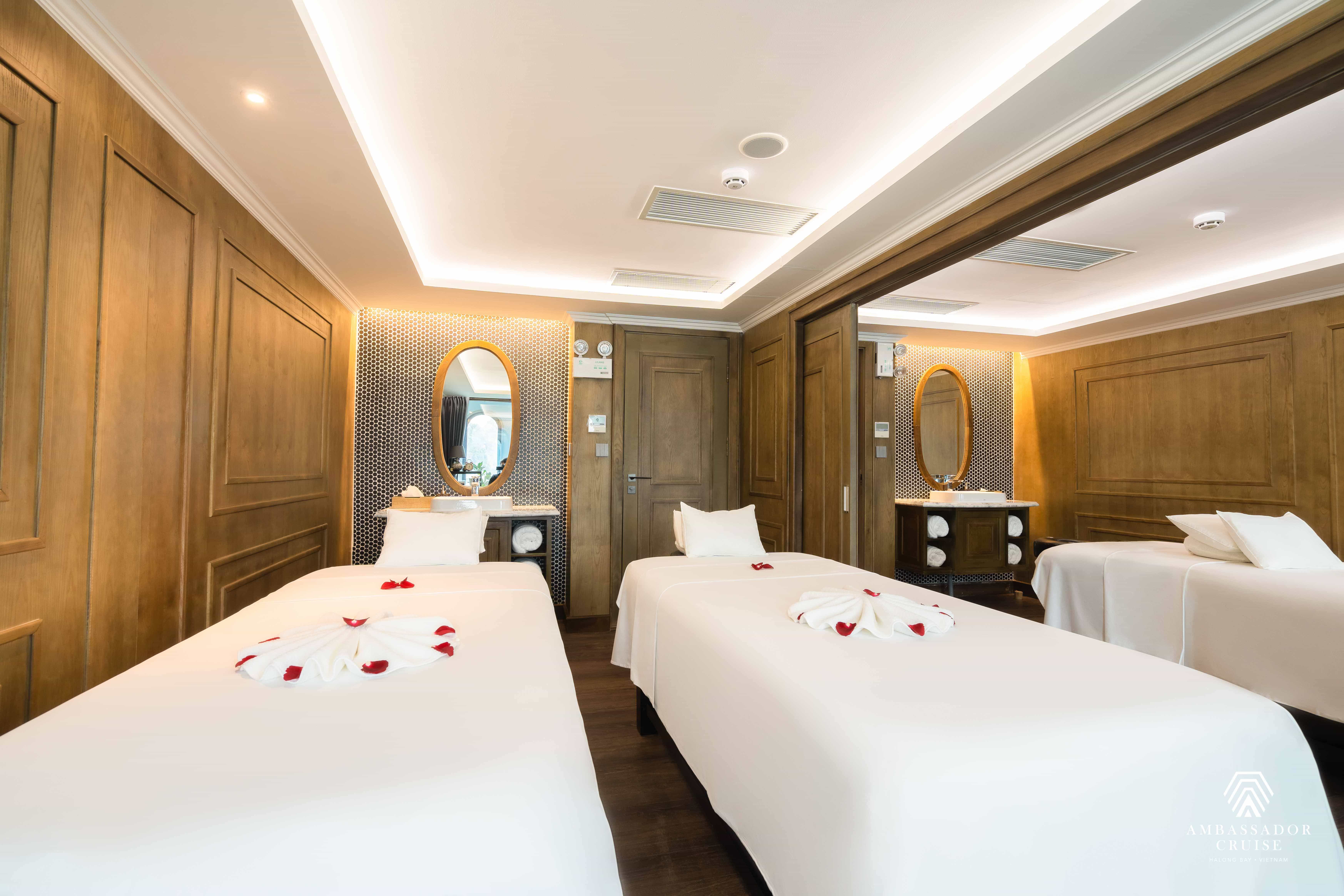 Du thuyền có một spa với bốn phòng, cung cấp cho khách hàng cơ hội thư giãn và trải nghiệm kỹ năng xuất sắc của nhân viên spa.
