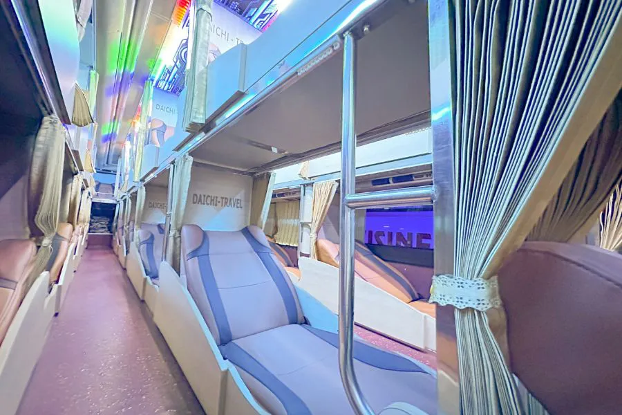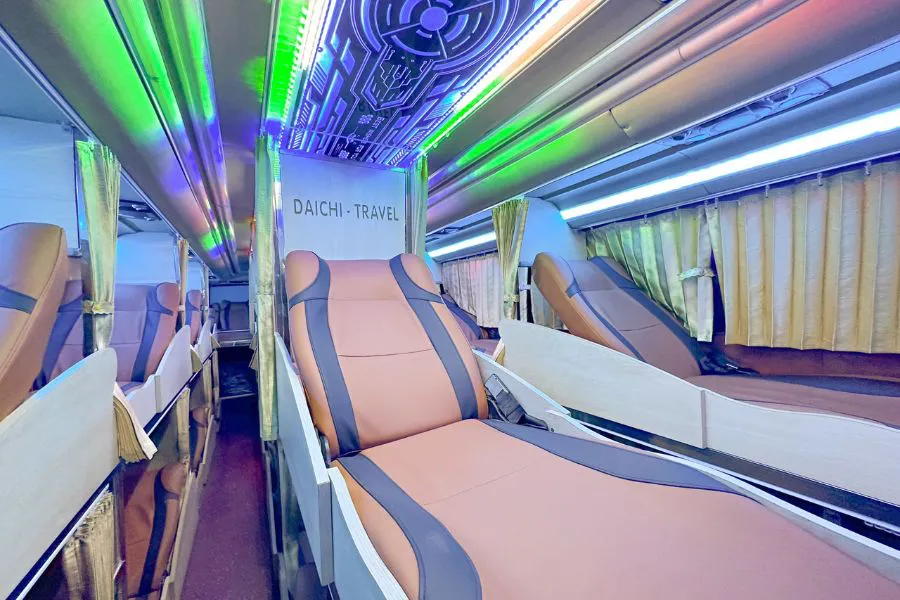 - Chất lượng xe vượt trội: Xe sạch đẹp, ghế nằm rộng rãi, thoải mái với đầy đủ tiện ích như cổng sạc USB, nước uống, bánh ngọt, khăn lạnh và chăn đắp.