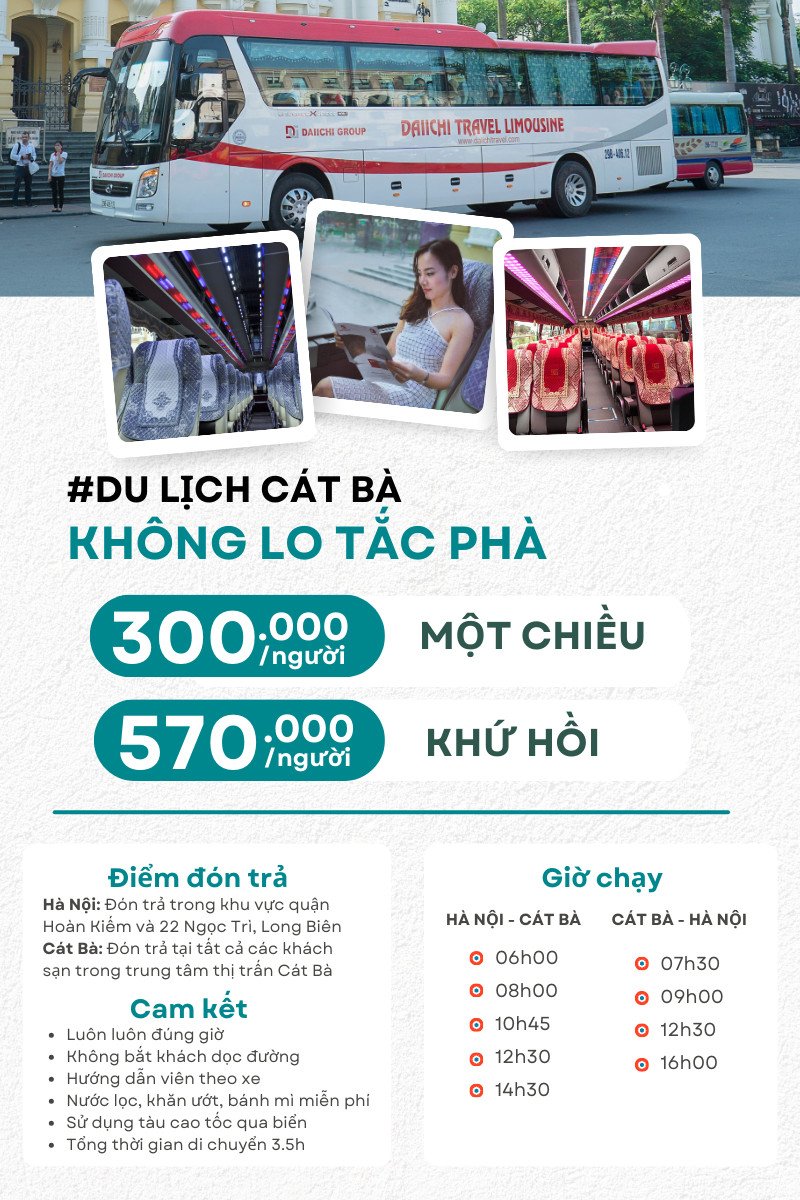 - Quý khách có thể tự do lựa chọn giờ đi và về xe Hà Nội Cát Bà.