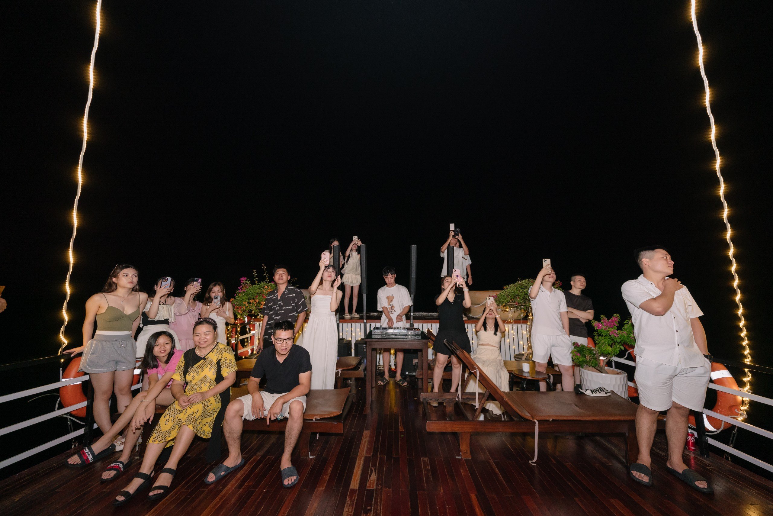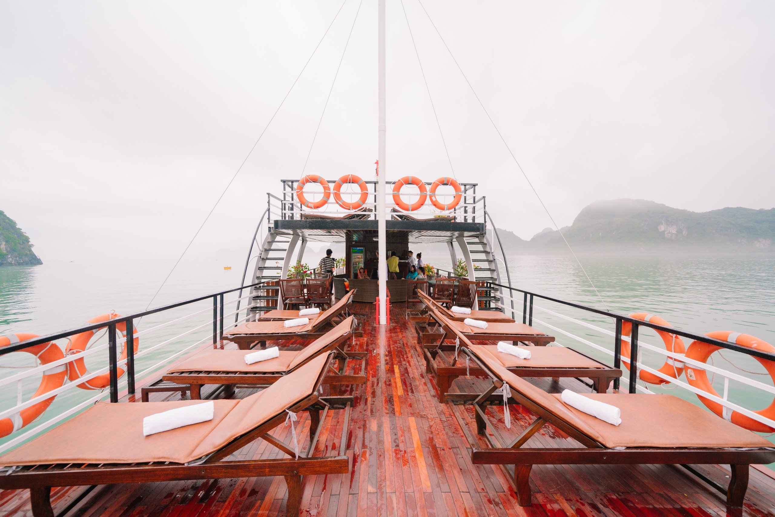 - Hiên tắm nắng tầng 3 là vị trí cao và đắt giá nhất trên du thuyền, nơi bạn có thể phóng tầm nhìn toàn cảnh vịnh Lan Hạ.