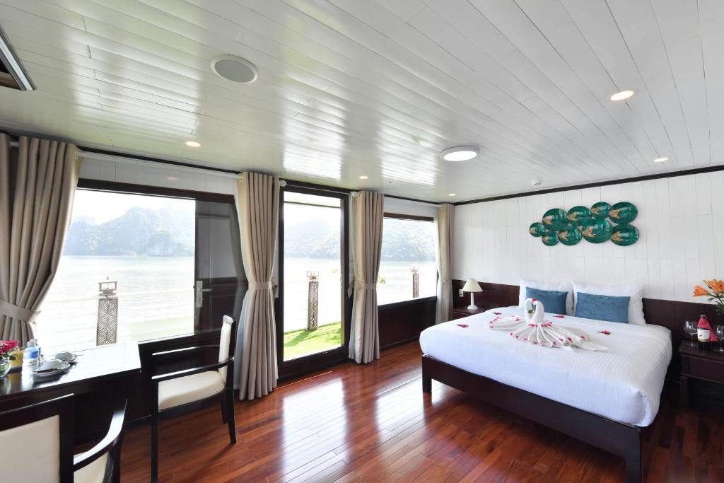 Chỉ có 1 cabin Suite nằm trên tầng 2, diện tích 22m², với ban công lớn và bồn tắm Jacuzzi, mang đến sự riêng tư và tiện nghi cao cấp.