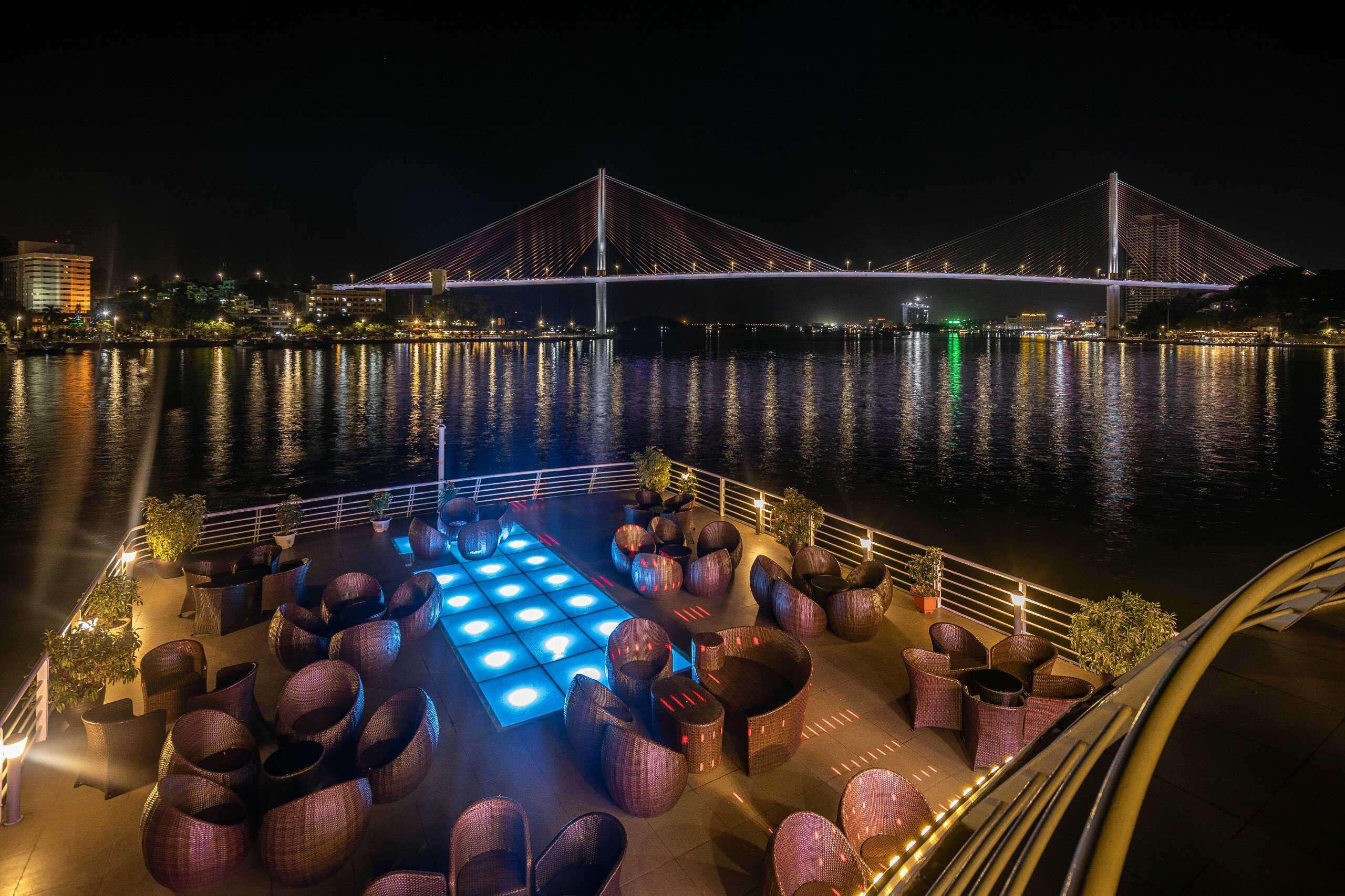 Khu vực ngoài trời với diện tích lên đến 350m², nằm trên tầng 3 của du thuyền, được trang bị hệ thống ánh sáng và âm thanh hiện đại nhất, là lựa chọn hoàn hảo cho một bữa tiệc sôi động hoặc chỉ để tận hưởng những giai điệu hài hòa.