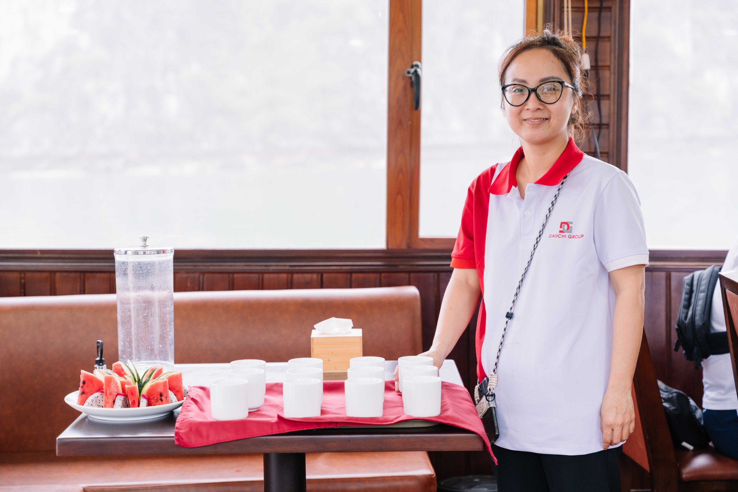 12.00: Trở về du thuyền Daiichi Cruise thưởng thức bữa trưa và ngắm cảnh. Với tour vịnh Lan Hạ 1 ngày đã bao gồm bữa ăn hải sản với thực đơn đa dạng, du khách sẽ thưởng thức thực đơn buffet hoặc set menu.