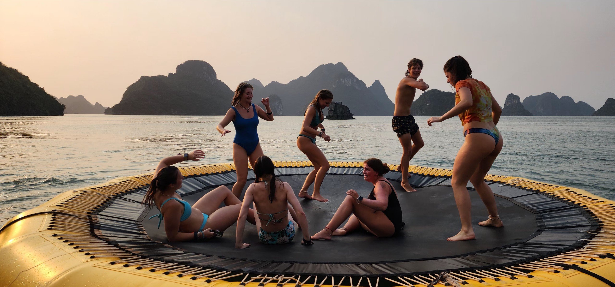 16h15: Tàu dừng tại bè nổi cho bạn tham gia các hoạt động thú vị trên vịnh: