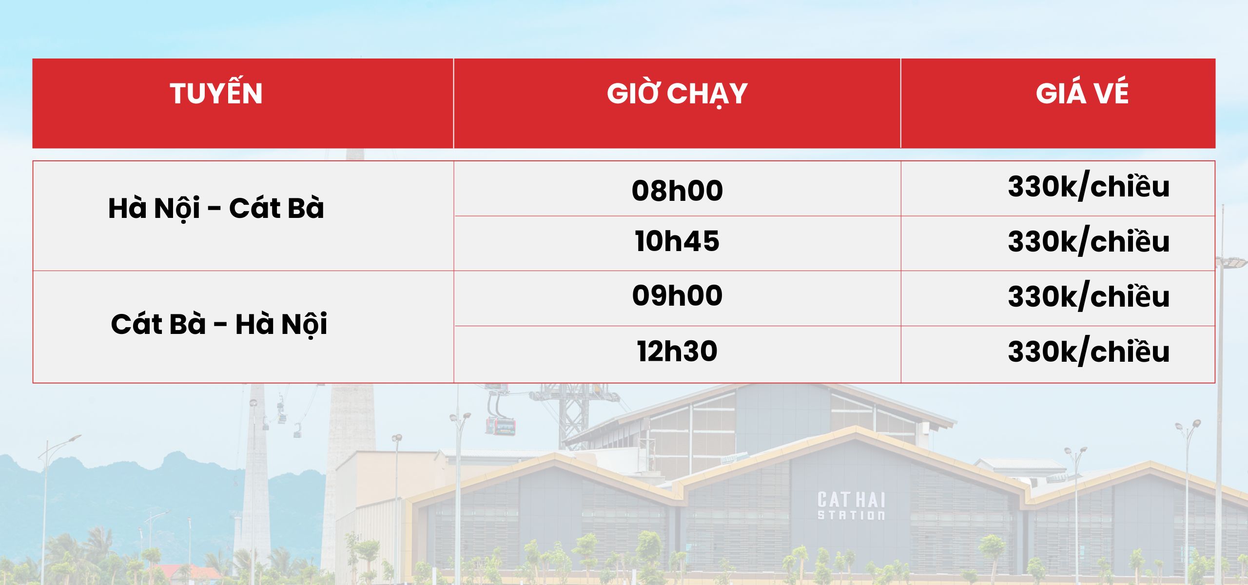 Hành trình xe Cát Bà Hà Nội ( Qua cáp treo)