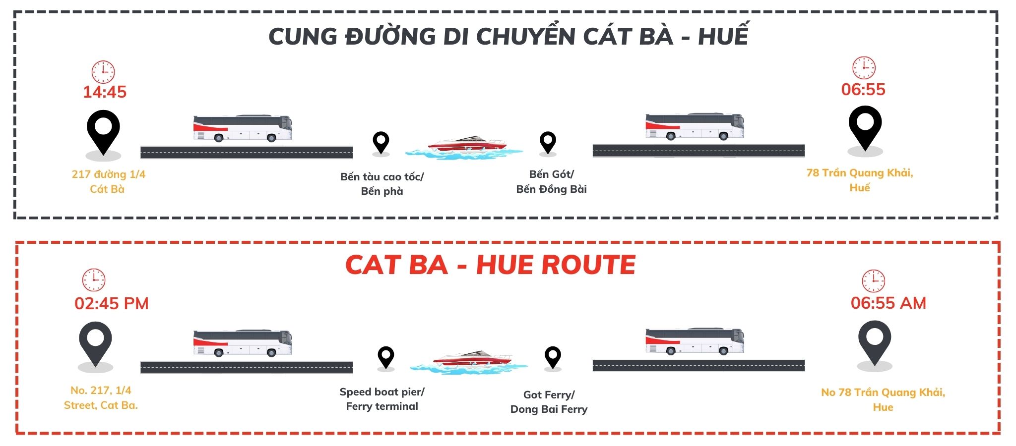 | Giờ khởi hành từ Cát Bà đi Huế | 15:00 |