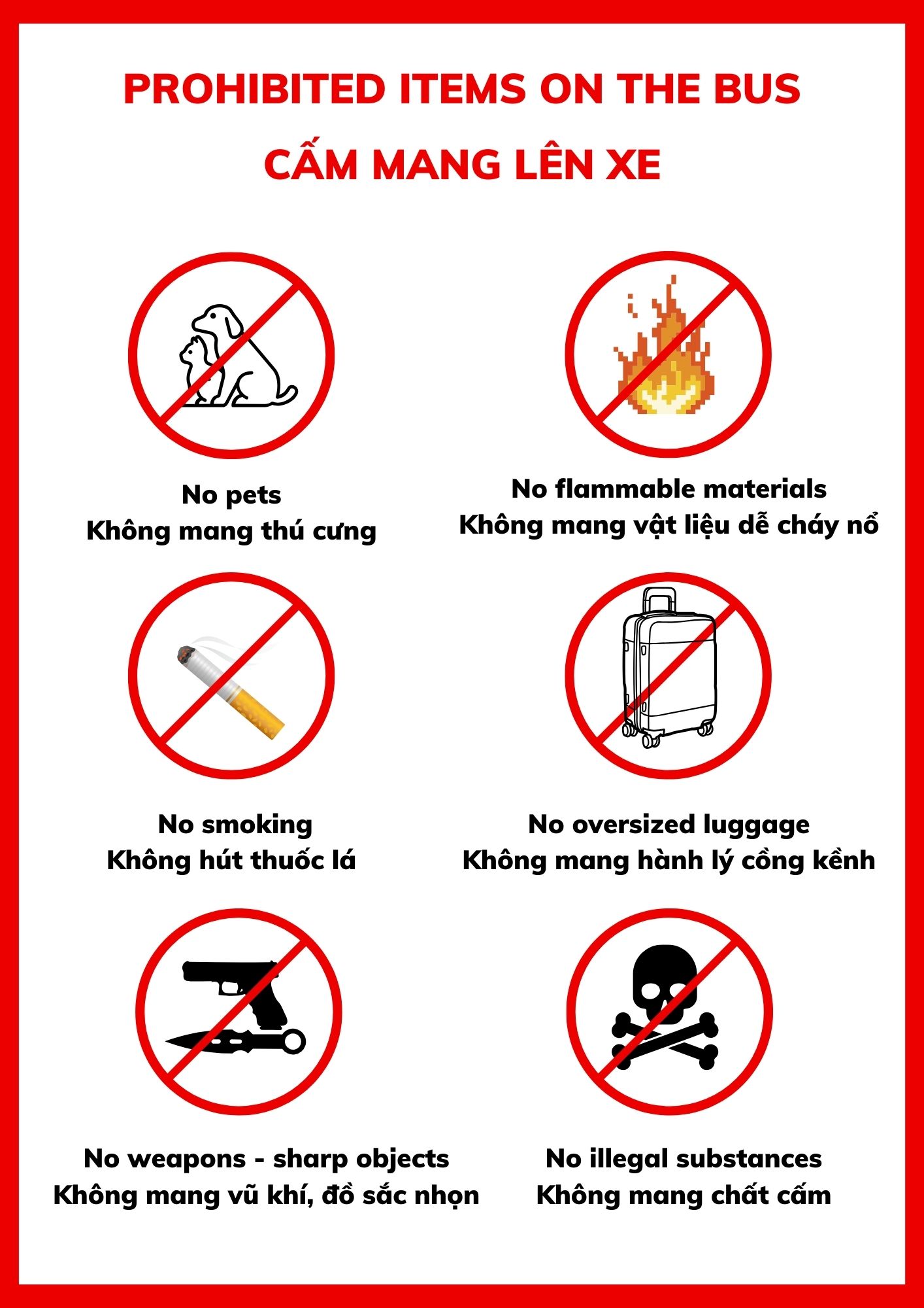 Hành khách không được phép mang các vật dụng sau lên xe buýt để có một chuyến đi an toàn: