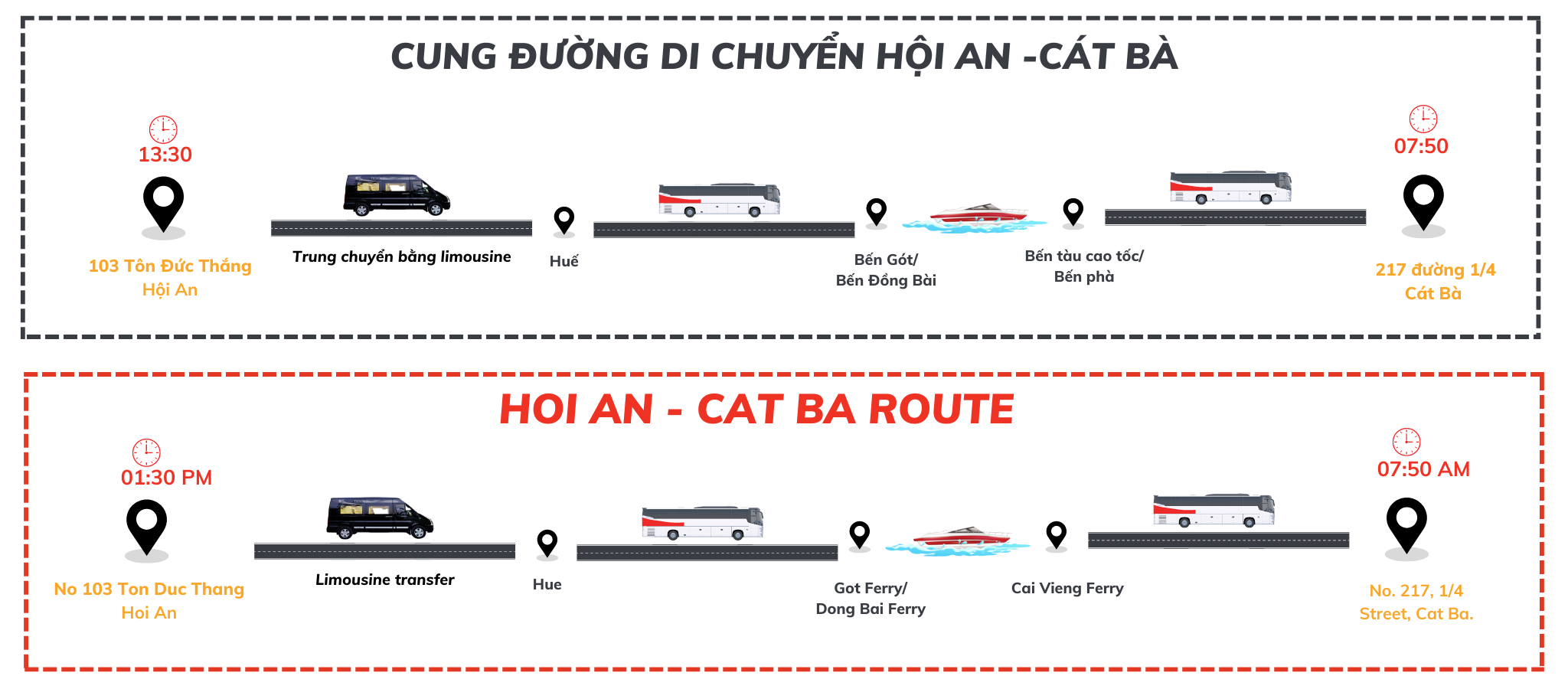 | Giờ khởi hành từ Hội An đi Cát Bà | 13:00 |